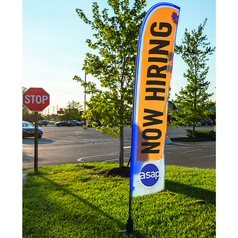 Our custom Adverflags® come in a variety of messages. Our ground flags are single sided reverse so they can be seen from both sides.